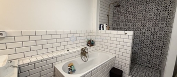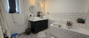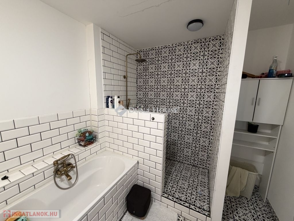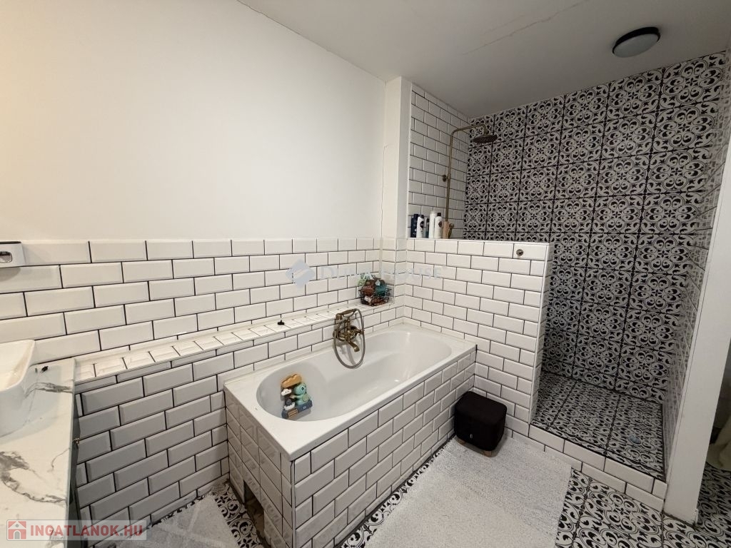 Modern fürdő káddal és zuhannyal, külön mellékhelyiséggel
