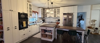 Tágas, napfényes amerikai konyhás nappali