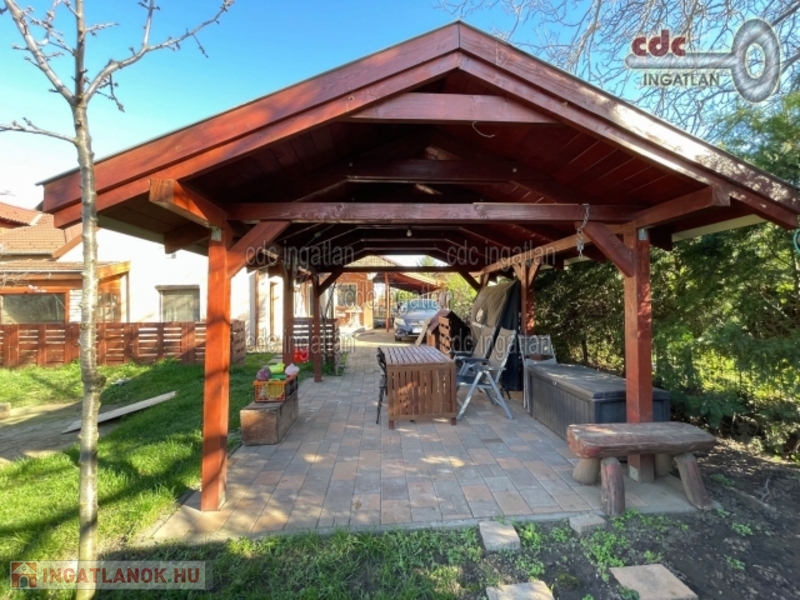 XVIII. kerületben, Ganz-kertvárosban kínálunk eladásra egy 160 m2-es, két szintes, körbenapozott, felújított önálló családi házat, mely egy 548 m2-es telken fekszik. A földszinten egy kényelmes, ablakos konyha, étkező, nappali, fürdő, az emeleten további 3 szoba és szintén fürdő található. Ezen felül, egy külön amerikai konyhás nappali és egy hozzá tartozó fürdő egy külön lakrészként lett kialakítva. A fűtést kombicirkó készülék biztosítja, a ház 15 cm-es szigetelést kapott. A villany- és gázfogyasztás a kedvezményes tarifán belül esik. A kertben egy 15 m2-es, tárolásra alkalmas kerti faház, szaletli, kerti sütögető lett kialakítva. Tárolásra egy 7 m2-es pincében szintén van lehetőség. A telek térkövezett részén akár 3 gépkocsi is kényelmesen tud parkolni, a beállást elektromos kapu könnyíti. A környék békés, csendes, családbarát. A közelben iskola, óvoda, bevásárlási lehetőség, a Market Central. Az ingatlan tehermentes, 1/1-es tulajdonú.