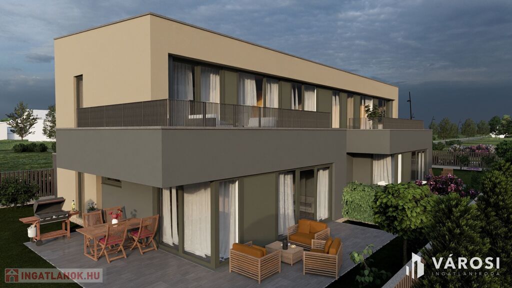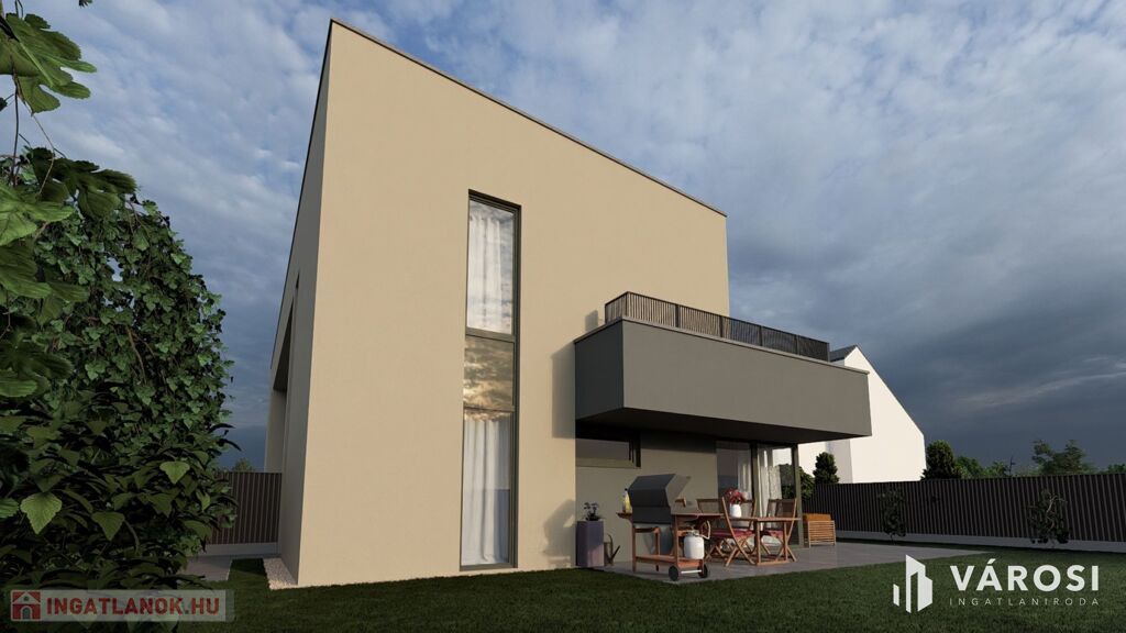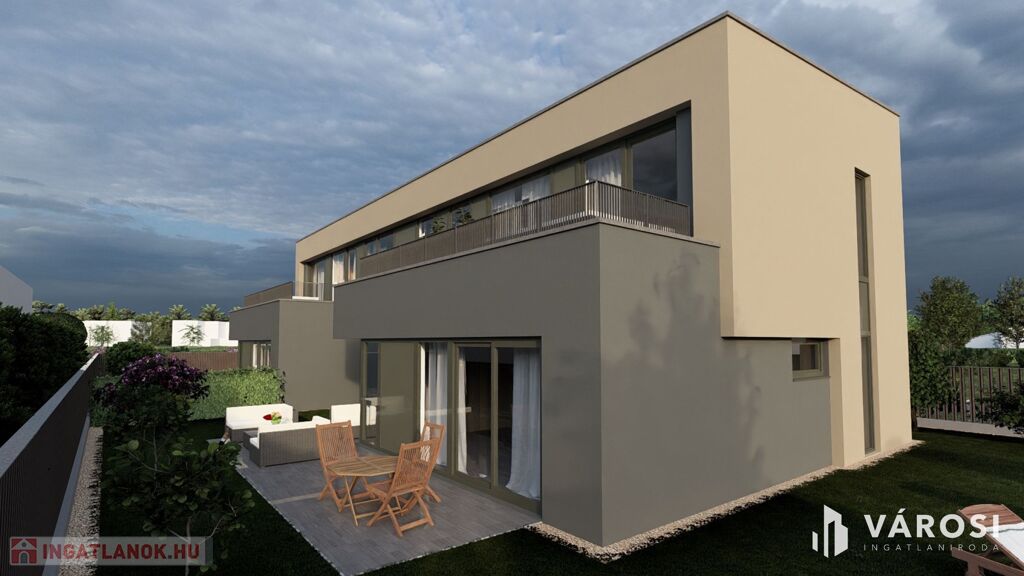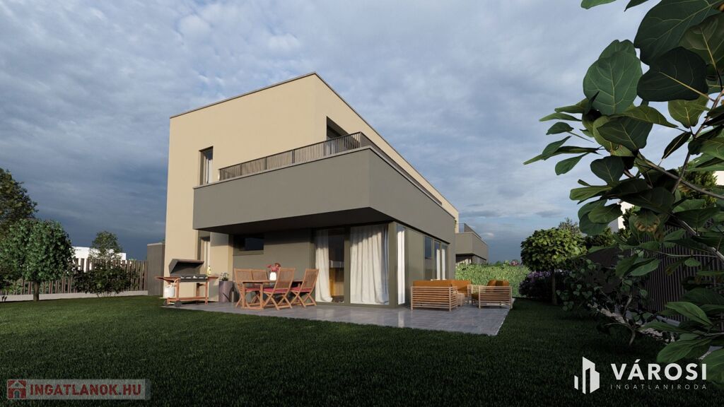 Csend, zöld környezet és modern kényelem – ezt kínálja ez a 134 m²-es, kétszintes, új építésű ikerház, melyhez 373 m²-es saját telekrész, 26 m²-es földszinti terasz és 18,64 m²-es emeleti tetőterasz tartozik.