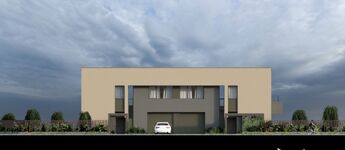 A két lakás csak a földszinten, a garázsnál kapcsolódik, a dupla főfal és légrés biztosítja a teljes akusztikus és fizikai leválasztást, így zavartalan, önálló élettér alakítható ki.