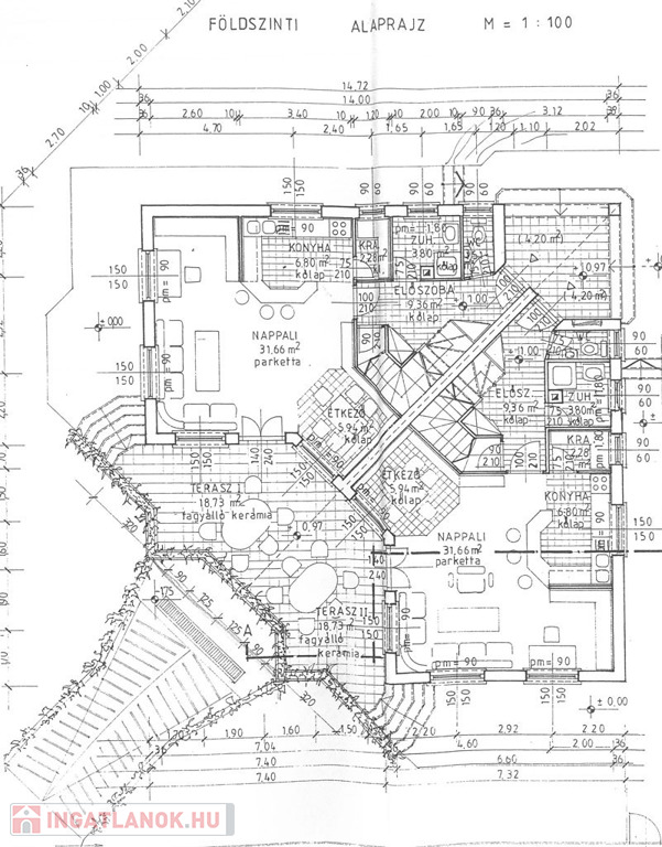 Eladásra kínálok a 18. kerületben, Pestszentimre Erdőskerti részén, a Nagykőrösi útra merőleges, csendes utcájában, családi házas övezetben, 684 nm alapterületű osztatlan közös telken álló, 1995-ben épült 2 szintes, pincézett, amerikai konyhás nappali + 3 félszobás, 175 nm-es, átlagos állapotú, részben felújítandó állapotú, iker beépítésű családi ház egyik felét, pinceszinten közel 40 nm-es, 2 állásos hatalmas garázzsal, műhelyrésszel, plusz tárolókkal, saját használatú rendezett, és szép állapotú, a ház mindkét oldalán húzódó saját kerttel és saját használatú hátsó udvarral, öntözőrendszerrel, külön locsolásra használható, külön mért, kedvező tarifájú vízfogyasztással, 18,7 nm-es saját terasszal.