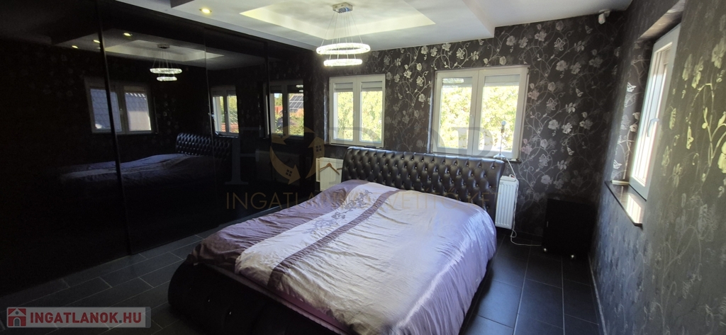 A földszinten tágas nappali, étkezős konyha, fürdőszoba WC-vel (egy légtérben), az emeleten két különnyíló szoba, valamint francia erkély található. A tetőtér nem beépíthető, de a lakótér így is kényelmes, jól kihasználható. A fűtésről gázcirkó, a hűtésről Gree klíma gondoskodik, a ház 10 cm-es külső szigeteléssel ellátott, minden nyílászárón redőny található. Riasztórendszer és elektromos kapu is beépített.