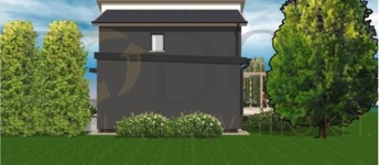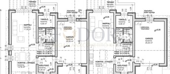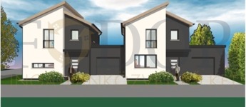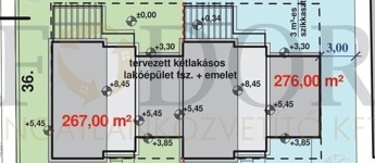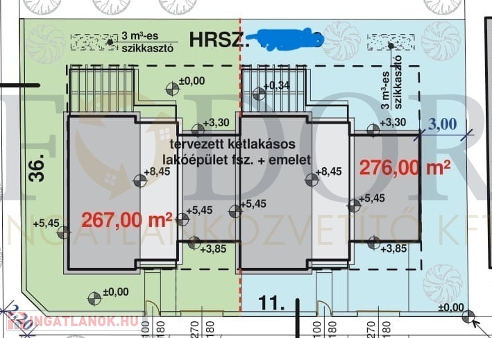 A két épület csak a garázsnál kapcsolódik, külön utcafronttal és saját, leválasztott 276 m²-es telekrésszel.