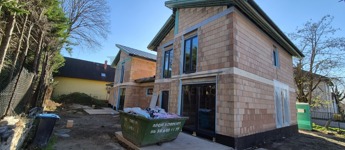 A XVIII. kerület Újpéteri-telep városrészének egyik nyugodt, hangulatos utcájában valósul meg ez a kiváló minőségű építkezés. A két lakóház egymás mellett helyezkedik el, külön utcafronttal és saját, leválasztott, 271 m²-es telekrésszel, így teljes önállóságot biztosítanak. Az épületek kizárólag a garázsnál érintkeznek, így egy ikerház előnyeit kínálják, de szinte teljesen önálló családi házként élhetők.