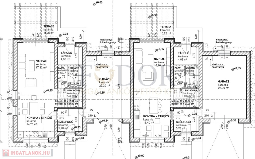 15,23 m²-es terasz kertkapcsolattal