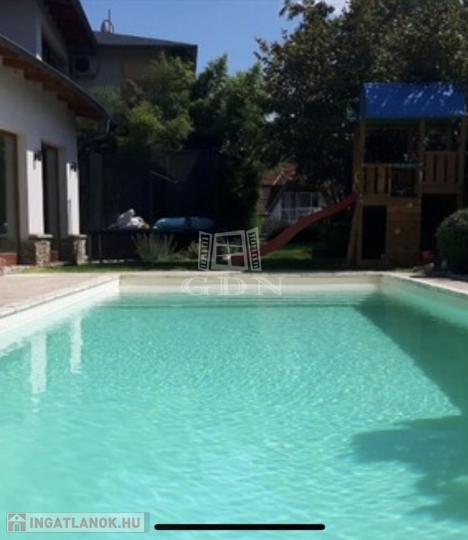 Eladó egy impozáns családi ház, amely a kerület központjához közel, mégis nyugodt, zöldövezeti környezetben helyezkedik el. A 1296 m²-es, gondozott kert öntözőrendszerrel, dísznövényekkel és hangulatos halastóval várja új tulajdonosát. A kertben fedett terasz és fűthető úszómedence biztosítja a tökéletes kikapcsolódást a melegebb hónapokban.