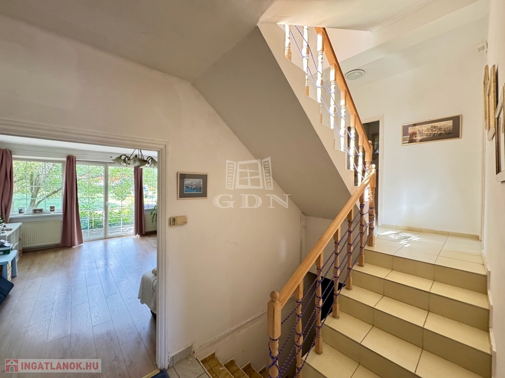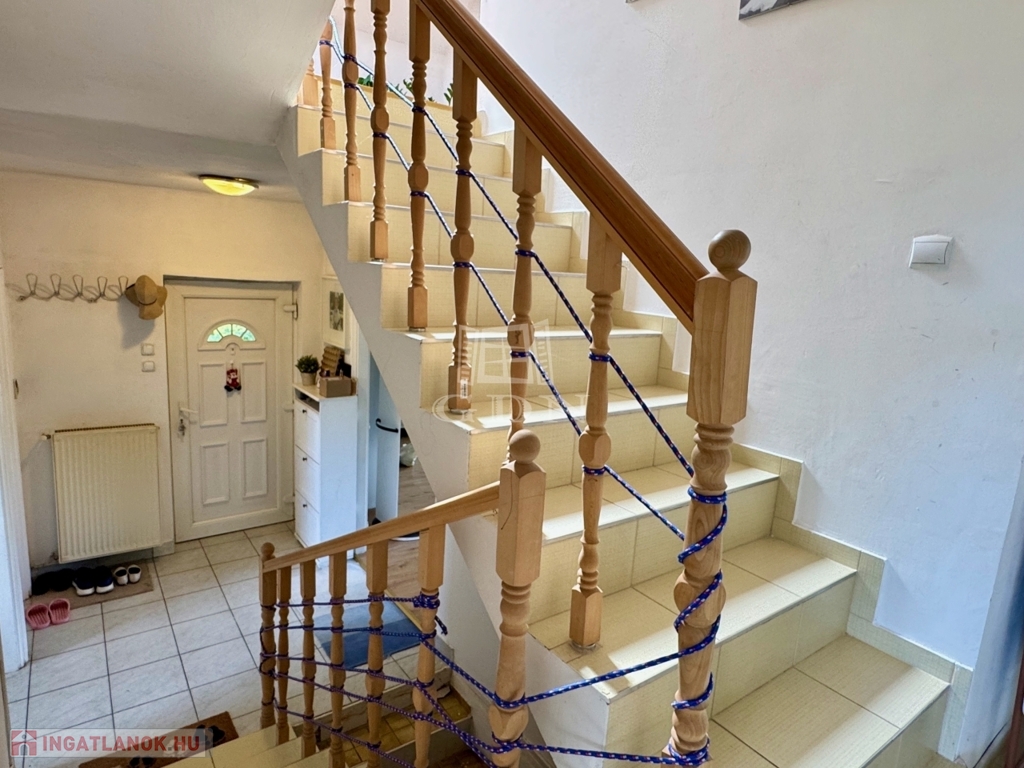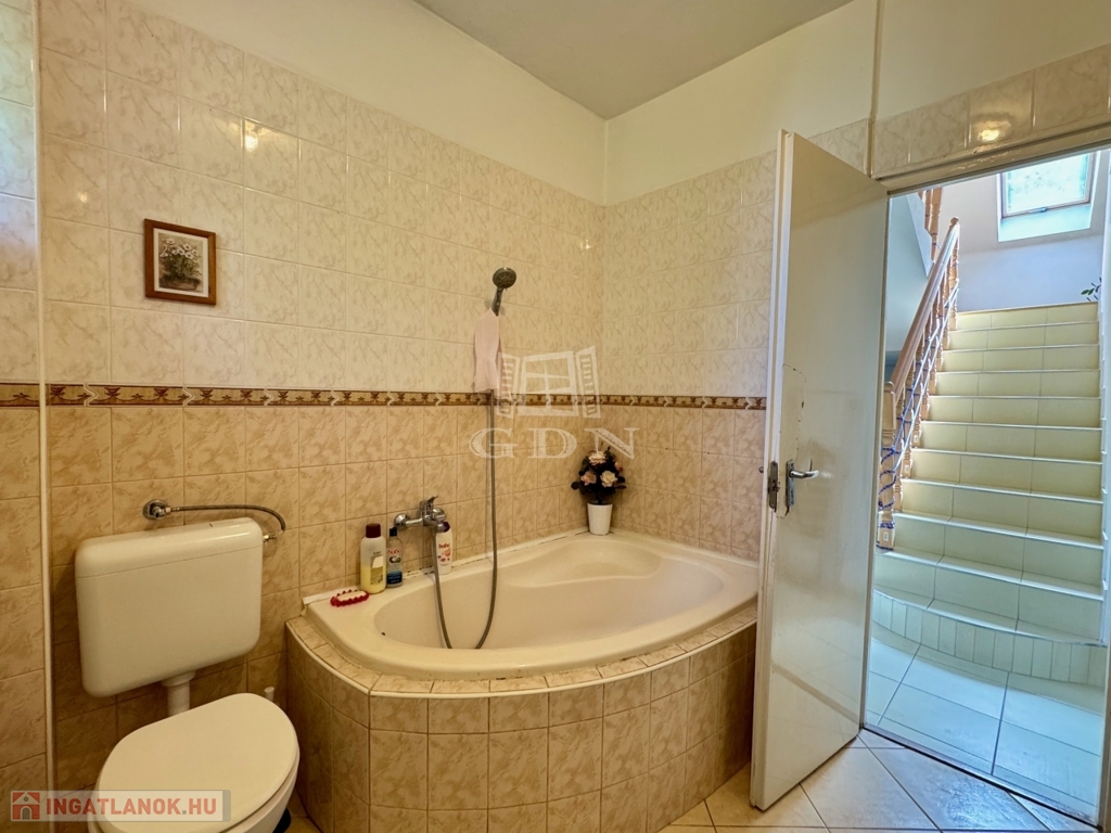 -Félemelet: folyosó(4m2), 2 szoba(16,62m2, 12,62m2), fürdőszoba+WC(6,57m2), erkély.