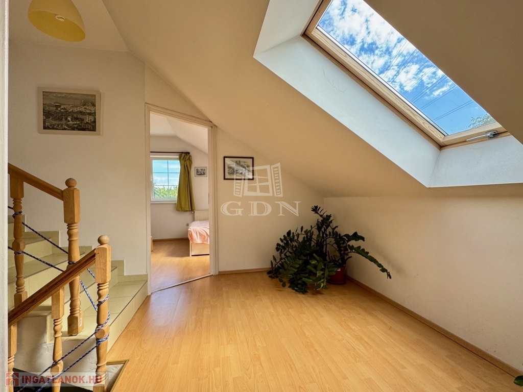 -Tetőtér: közlekedő(6m2), 2 szoba(20m2, 14m2), fürdőszoba(4,3m2).