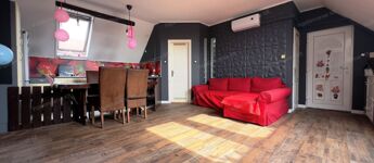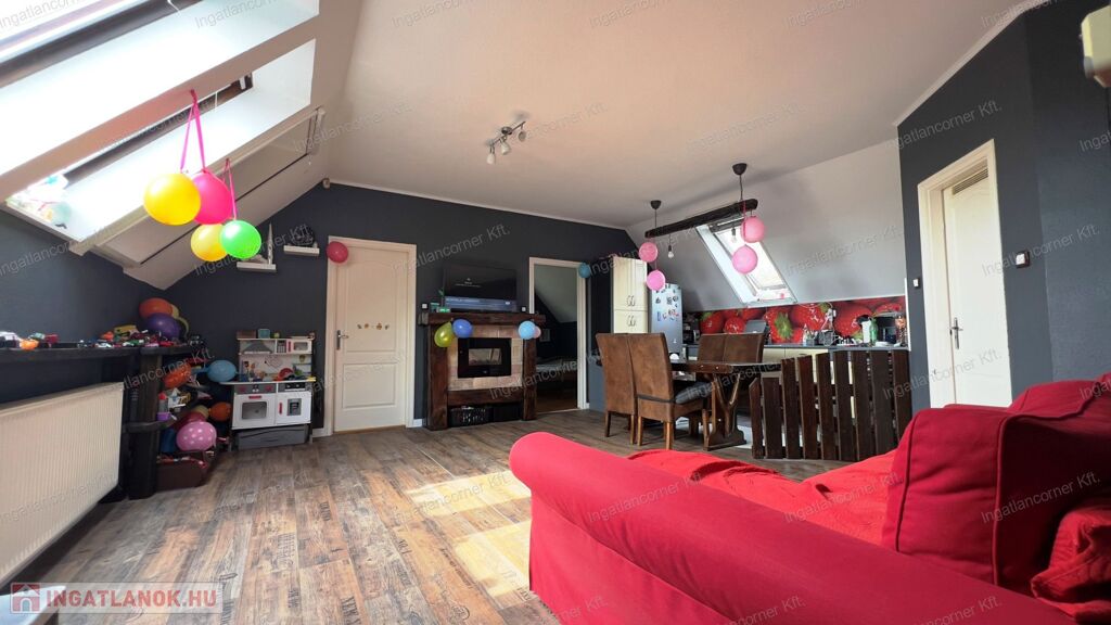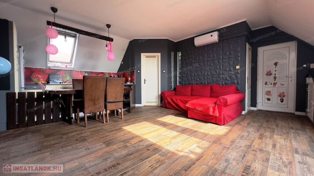 Soroksáron a Hősök terénél eladó, 4 lakásos társasházban, 85nm tetőtéri lakás. Az ingatlanhoz tartozik 52nm terasz, 28nm GARÁZS, 2 kocsi beálló és 176nm saját, lekerített kert!