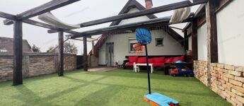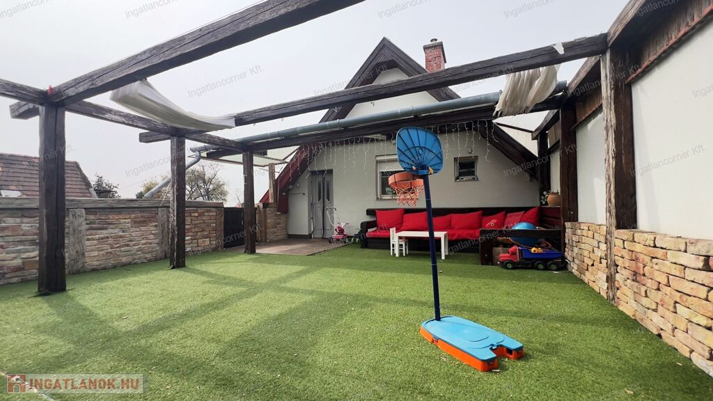 Saját körbe kerített 176nm kert, melyben gyümölcs fák találhatóak, gyerek játszótér, csúszda, fűszer kert, trambulin, nyáron medence.