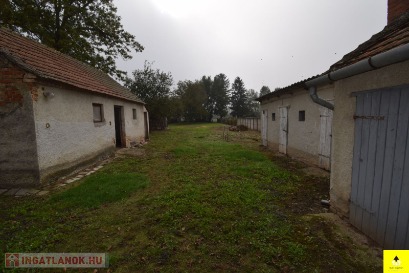 Az ingatlan 1600 m2-es körbekerített telken fekszik. A ház mögött garázs és melléképület is van. A telek mérete alkalmassá teszi háztartási konyhakert kialakítását, ami biztosítani tudja egy család önellátását. A kert locsolását bővizű kútról lehet megoldani.