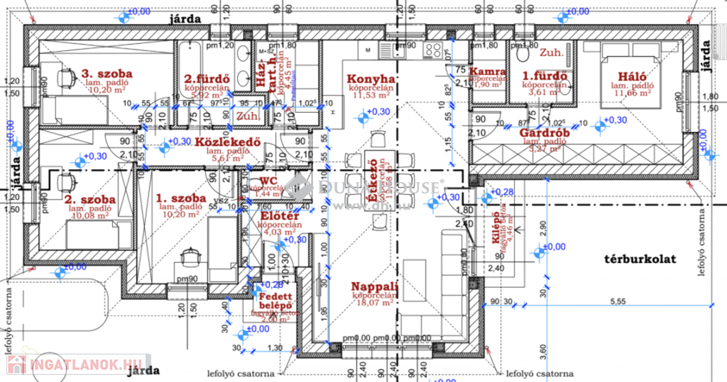 Eladásra kínálunk egy új-építésű, hőszivattyúval felszerelt, prémium műszaki tartalommal rendelkező, 117 m2-es családi házat Cegléd, Szellő utcában. A telek mérete 740 m2, az ár pedig a TELEKKEL EGYÜTT értendő.A tervek elkészültek, a kivitelezés idő pedig garantált 10 hónap, melyet a kivitelező KÖTBÉR ELLENÉBEN IS VÁLLAL! A projekt kivitelezői ELŐFINANSZÍROZÁSSAL is megvásárolható (nem kell előre fizetni), tehát mindig az elkészült, átadott ütem után kell fizetni, illetve a kivitelező szerződésben vállalja, hogy ÁR GARANCIÁT vállal az építményre.A családi ház nettó alapterülete 117 m2, amely tartalmaz:– 5 szobát (amerikai konyha-nappali-étkező + 4 hálószoba);– 2 fürdőszobát– háztartási helyiséget;– kamrát;– vendég WC-t;– és egy előszobát.Műszaki tartalom:– Teherhordó falazat: Wienerberger Porotherm Profi 30 X-Therm tégla– Homlokzati hőszigetelés: 15 cm– Tetőhéjazat választható: Bramac Római Novo, Leier Toscana vagy Terrán Renova Plus tetőcserép választható színben– Külső nyílászárók: 3 réteg üvegezésű, prémium Gealan S9000 külső nyílászárók, 44 mm-es melegperemes üvegezéssel – Válaszfal: Wienerberger Porotherm 10 tégla válaszfal– Hidegburkolat választható: 8500 Ft / m2- Melegburkolat választható: 8000 Ft / m2- Szaniterek választható: (kád, zuhanykabin, csaptelep stb.) 700000Ft-ig- Bejárati ajtó választható: Colorplast rátétes intarziás inox betéttel- Teraszajtó: Dupla szárnyas- Beltéri ajtó: Borovi Szcília (CPL) választható színben- Gépészet: Bosch 6000 prémium levegő-víz hőszivattyú vizes padlófűtésselAz ár kulcsrakész állapotban történő átadással értendő, konyhabútor és lámpatestek nélkül!Közművek:– Gáz: ingatlanban– Villany: ingatlanban– Csatorna: derítő kerül kiépítésre – Víz: ingatlanbanAjánlom mindazoknak, akik Cegléd csendes, új-építésű környezetben szeretnének élni.