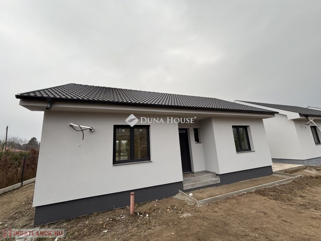 Eladásra kínálunk Cegléd, Nyíl közben egy 65 m²-es, új építésű családi házat, amely hőszivattyúval, fedett gépkocsibeállóval és prémium műszaki tartalommal rendelkezik.A 400 m²-es telek a vételár részét képezi, és az osztatlan közös tulajdonhoz, ügyvédi használati megosztás is tartozik.A teljes, 2940 m²-es területen 4db sorházi jellegű családi ház épül. Minden ingatlanhoz saját telekrész tartozik. (400 m²)Továbbá közös elektromos kapu, fedett beálló, valamint egy parkolóhely is.A kivitelezés már megkezdődött, a várható átadás pedig 2026. február.A kivitelező KÖTBÉR-GARANCIÁT IS VÁLLAL!A projekt kivitelezői ELŐFINANSZÍROZÁSSAL is megvásárolható (nem kell előre fizetni), tehát mindig az elkészült, átadott ütem után kell fizetni, illetve a kivitelező szerződésben vállalja, hogy ÁR GARANCIÁT vállal az építményre.A családi ház nettó alapterülete 65 m2, amely tartalmaz:3 szobát (amerikai konyha-nappali-étkező + 2 hálószoba);1 fürdőszobátFedett gépkocsi beállótés egy előszobát.Műszaki tartalom:Teherhordó falazat: Wienerberger Porotherm Profi 30 X-Therm téglaHomlokzati hőszigetelés: 15 cmTetőhéjazat választható: Leier Toscana tetőcserép választható színbenKülső nyílászárók: 3 réteg üvegezésű, kívül antracit, belül fehér prémium Gealan S8000 külső nyílászárók, 36 mm-es üvegezéssel + antracit, alumínium redőnyök + antracit műkő párkányVálaszfal: Wienerberger Porotherm 10 tégla válaszfalBejárati ajtó választható: Colorplast standard betéttelTeraszajtó: Dupla szárnyasBeltéri ajtó: Borovi Szicília (dekorfóliás) választható színbenGépészet: Bosch 3400 levegő-víz hőszivattyú vizes padlófűtésselAz ár kulcsrakész állapotban történő átadással értendő, konyhabútor és lámpatestek nélkül!Közművek:Gáz: nincsVillany: ingatlanbanCsatorna: derítő kerül kiépítésreVíz: ingatlanbanAjánlom mindazoknak, akik Cegléd csendes, új-építésű környezetben szeretnének élni.
