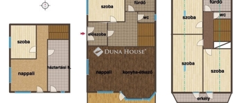 Eladásra kínálok Zalaegerszeg közelében, Csatár egyik legszebb részén, a halastó közelében egy 2002-ben épült, majd pár évvelezelőtt nagyobb felújításon átesett családi házat, amely bruttó 170 m2 , nettó 150 m2 -en nyújt, akár 2generáció számára is kényelmes életteret.Az alagsor téglából épült a földszint és a tetőtér könnyűszerkezetes, a telek 850 m2 .A házban található 2 nappali, 5 külön nyíló szoba, 2 fürdő, 2 külön WC, 1 háztartási helyiség, 1 erkély,2 terasz, az udvarban 2 faház. A ház előtt fedett, 2 autós beálló és további 2 autó számára kialakítottnyitott hely biztosítja a parkolást.A fűtést kondenzációs gázkazán biztosítja (alagsori rész külön vezérlőegységgel ellátott). Az ingatlanhőszivattyús hűtő-fűtő klímarendszerrel ellátott, H tarifás, 3 fázis, továbbá 4,75 Kw-os, 10Kw-osakkumulátorral rendelkező napelemrendszer is telepítésre került.A felújítás során a ház 10 cm-es külső szigetelést, belül új hideg és melegburkolatot kapott.Alumínium redőnnyel, szúnyoghálóval ellátott szigetelt műanyag ablakok, valamint a konyhában újmodern bútorok, a fürdőkben új szaniterek falburkolatok kerültek beépítésre.Az alagsorban található 1 nappali, 1 külön bejáratú szoba és a 15 m 2 es háztartási/tároló helyiség(amelyből kis ráfordítással egy konyha és egy fürdő, WC alakítható ki, így alkalmas lehet 2 generációszámára a ház, vagy akár a külön lakrész bérbe is kiadható).A földszinten helyezkedik el a konyha-étkező-nappali, melyből a teraszra kilépve gyönyörű kilátásfogad, továbbá található egy szoba, egy fürdő és egy külön WC.A tetőtérben a folyosóról nyílik a 3 szoba, a fürdő és a külön WC. 2 szobából egy kisebb erkélyre lehetkimenni, ahonnan elénk tárul a csatári erdő.A ház igazi gyöngyszeme a közel 50 m 2 es fedett terasz, mely kellemes helyet biztosíthat a nagycsaládi, vagy baráti összejöveteleknek.Az udvar rendezett, nemrég gyümölcsfák lettek ültetve, egy kis veteményes és virágos kert is ki lettalakítva.Ha felkeltettem érdeklődését, hívjon bizalommal
