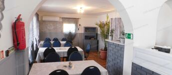 - földszint: étterem kiszolgáló helyiségekkel, 2 vendég WC, 1 személyzeti WC, 2 terasz, raktár; lakótér: előtér, nappali, konyha, fürdőszoba zuhanyzóval, külön WC