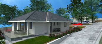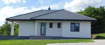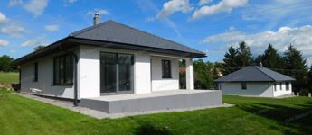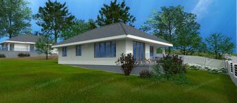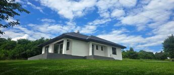 Egyszintes, 129 nm-es CSALÁDI HÁZ nagy nappalival, 3 hálószobával, részben fedett teraszokkal eladó.