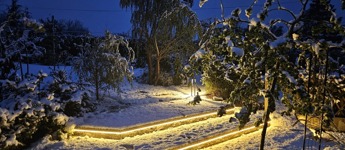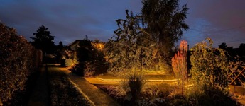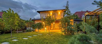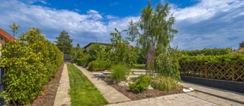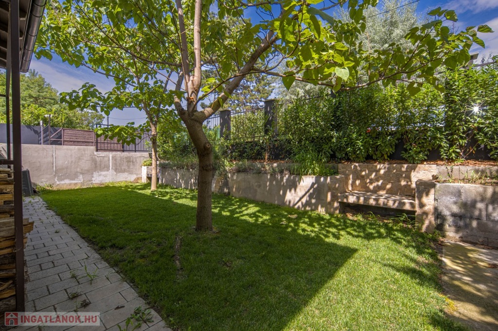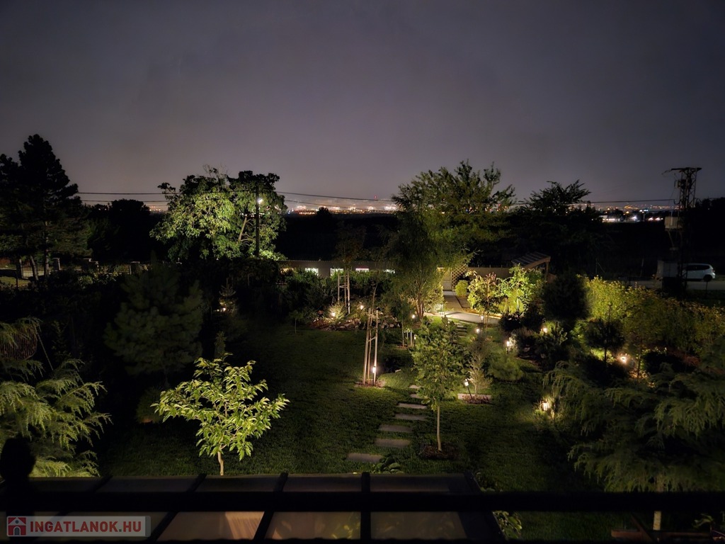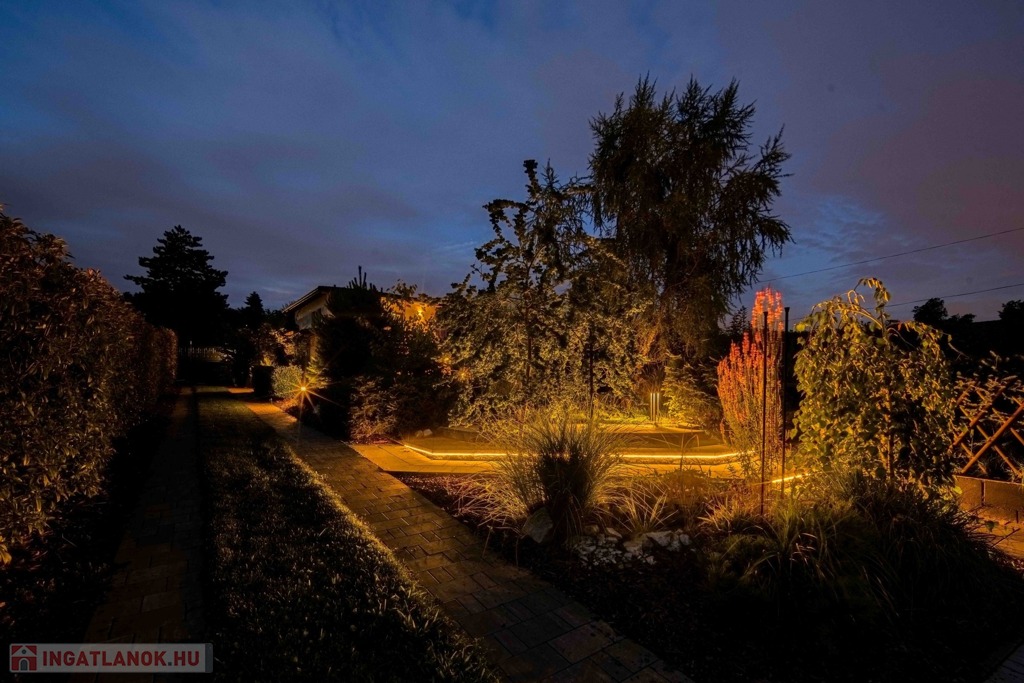 A telken mediterrán fű, autómata öntözőrendszer, fúrt kutak és rengeteg különleges fa és cserje saját gyökéröntözéssel.