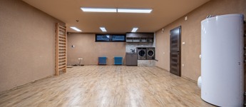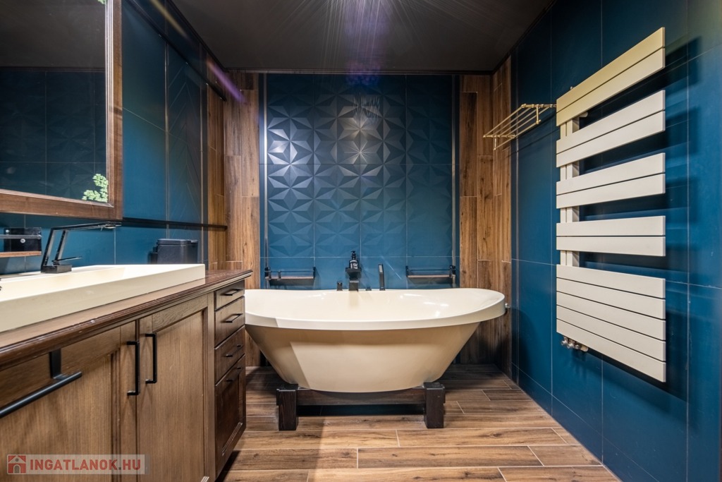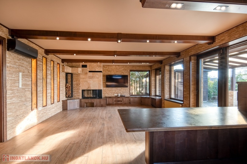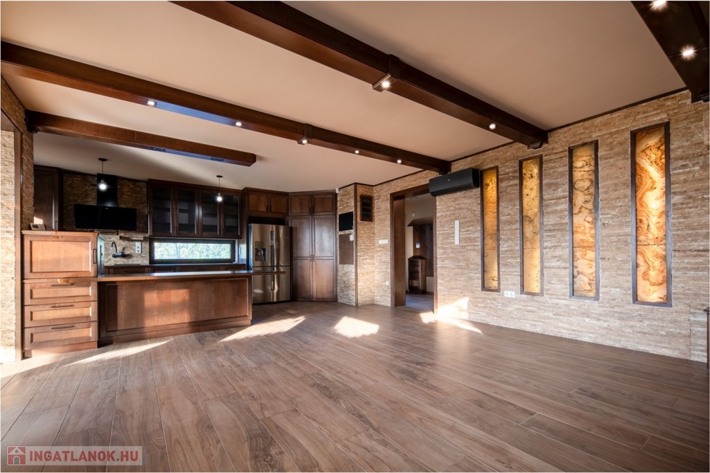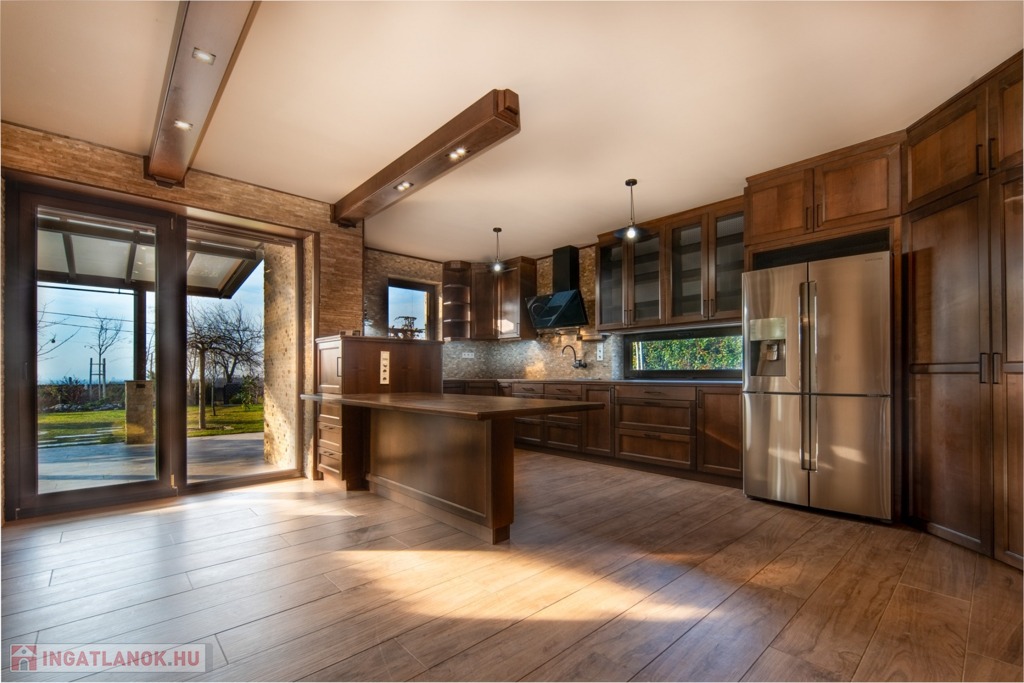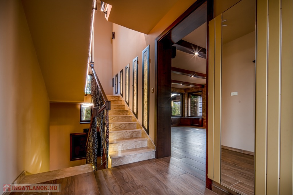A ház minden szeglete úgy lett kitalálva és megépítve, hogy segítse, egyszerűsítse a tulajdonos életét: a teljesség igénye nélkül: elektromos redőnyök, megemelten elhelyezett NEFF konyhai gépek, minden növényhez kiépített autómata locsolórendszer fúrt kutakról, távolról irányítható világítások, kamera- és riasztórendszer, minőségi anyagok, 3 rétegű nyílászárók... Minden fürdőben padlófűtés és törölközőszárítós radiátorok, 32 kw-os Viesmann cirkófűtés, valamint a klimatizált nappaliban található kandalló levegője is át van vezetve a hálóba.