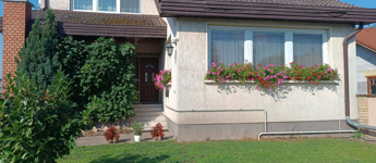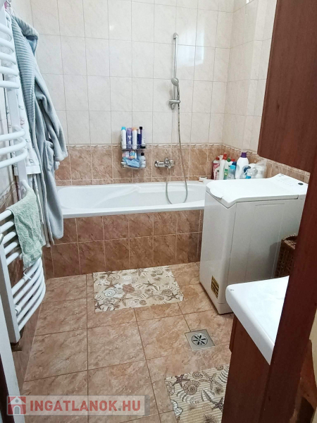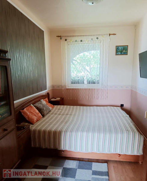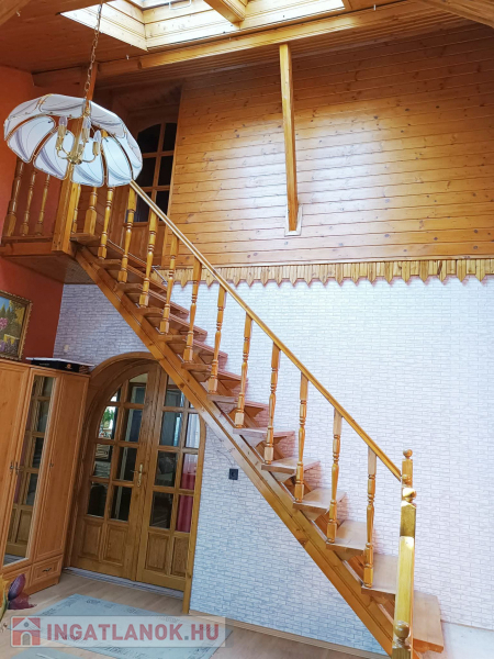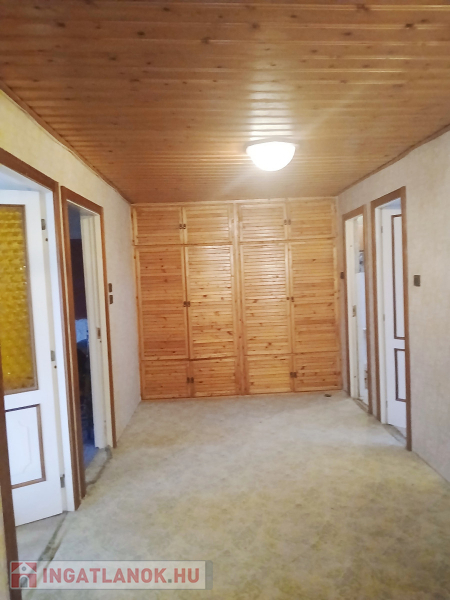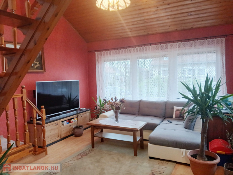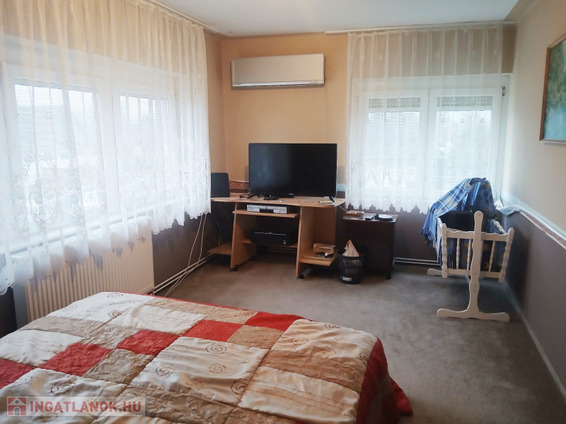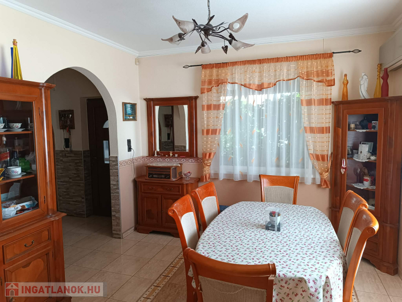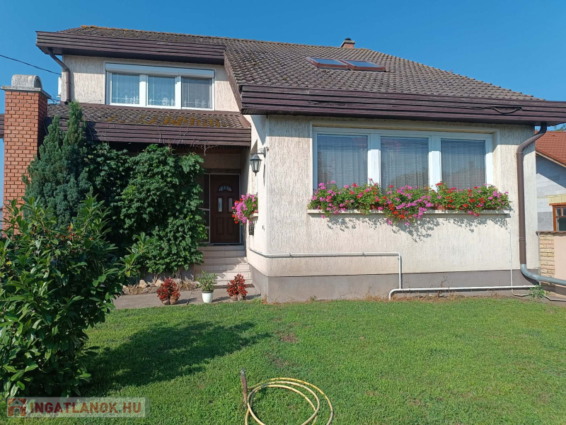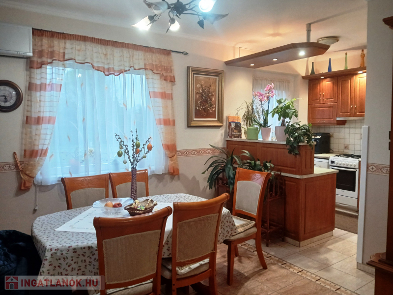 Budapesttől 35 percre Dabason eladó egy 122 nm-es családi ház, ami 1987-ben épült beton blokk falazattal, 2160 nm -es telekkel. A ház pincéje és az emelet beton födémes. A tetőszerkezet fa alapú, cserépfedéssel. A nyílászárók szinte mindenhol műanyagok, redőnnyel ellátva. A fűtésről gáz cirkó gondoskodik radiátoros hőleadással, valamint a földszinten és az emeleten egy-egy hűtő-fűtő klíma biztosít kellemes hőmérsékletet egész évben. A melegvíz ellátásról a gázkazán gondoskodik, de rendelkezésre áll még egy villanybojler is. A házban a földszinten egy nappali, étkező-konyha, közlekedő, szoba, valamint  fürdőszoba található továbbá egy külön WC, egy kamra.  Az emeleten egy előtér és két különnyíló szoba, fürdőszoba és külön wc kapott helyet.  A telek részben parkosított, amely fúrt kútról locsolható és kiválóan alkalmas akár gazdálkodásra, akár kertépítésre. A kocsibeálló ami a garászhoz vezet és az udvari járda térkövezett.  Amennyiben felkeltette érdeklődését, hívja a 06204004006-os telefonszámot