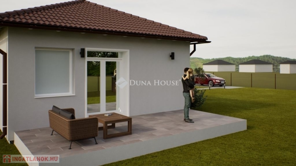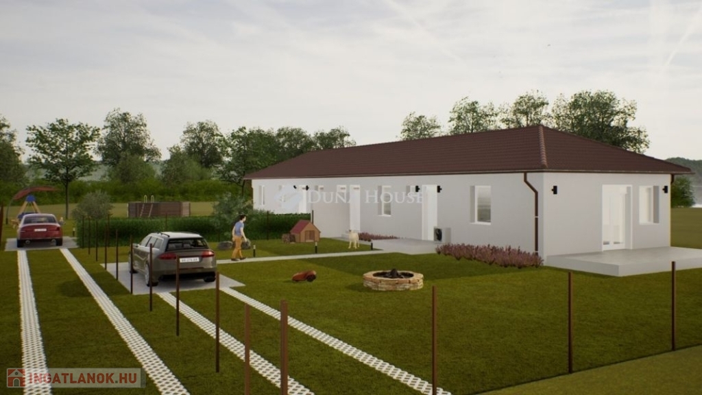 ELADÓ ÚJ ÉPÍTÉSŰ 78 m2-es 2 szoba + nappali kialakítású ikerház Dánszentmiklóson!Telek mérete: 564 m2Budapest távolsága 40 perc.Kialakítása: 2 szoba, nappali, konyha+étkező, kamra, tároló, fürdő+wc, külön wc, előtér, közlekedő, nyitott terasz 20 m2Átadás: 2026. év vége Műszaki tartalom: beton alapon, cserép fedésű tetővel, tégla falazatú (viablokk 30 és 10-es) 10cm eps szigetelés körben.Fűtést hőszivattyú adja, padlófűtés mindenhol, 2 db 2,5 kw-os klíma az árban.Barna színű lábazat, barna tetőcserép, fehér homlokzat, kerítés az árban.Választhatók:hideg burkolat: 8000 Ft/ m2meleg burkolat: 6000 Ft / m2beltéri ajtók: 100.000 Ft /dbszaniterek: 450.000 Ft-igKiváló minőségben épülő 4 ikerház kerül kialakításra, kiváló utcában.Közelben gyalogosan: Abc, Orvosi rendelő, buszmegálló. Iskola és Óvoda pár pernyire.Albertira távolsága autóval 5 perc.Amennyiben felkeltettem érdeklődését, hívjon bizalommal.