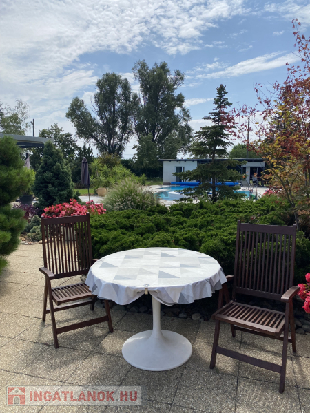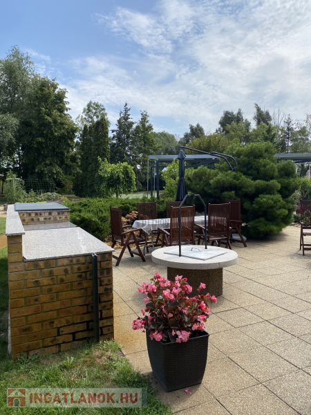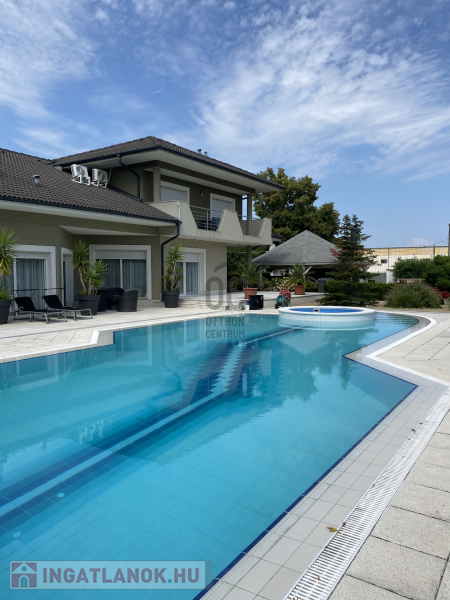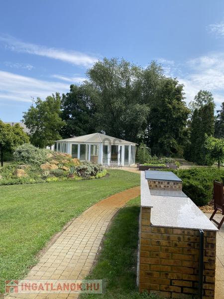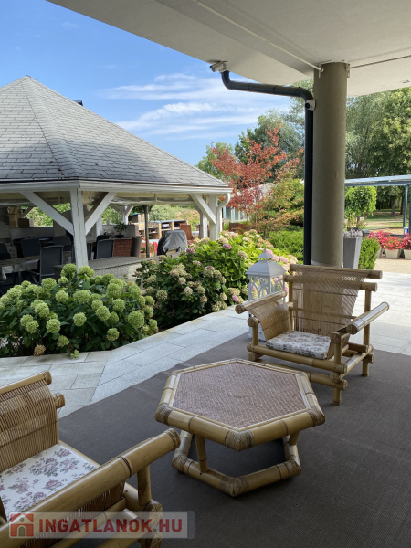 A kertben csodálatos fák, virágok és egy Koi pontyokkal teli, vízeséssel fűszerezett kerti tó is fellelhető. Természetesen, a Villából és annak erkélyeiről, az abszolút egyedülálló panorámához szintúgy hozzátartozik az impozáns úszómedence –fűthető szeparált résszel-, teniszpálya, télikert, 200 nm-es terasz, öltözők, kerti helyiségek és egy minden gasztronómiai elvárást kielégítő konyhablokk a filagóriában. Három autó a teremgarázsban, húsz az udvaron helyezhető el.