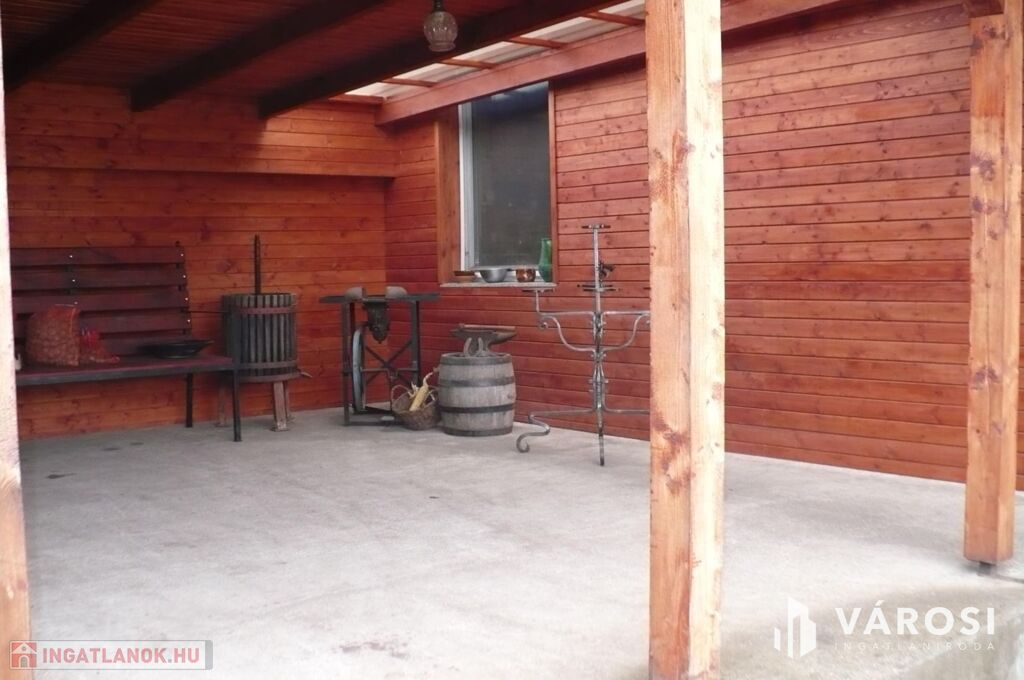 A kertben terasz, kerti grillezőhely, valamint fúrt kút és hidrofor is rendelkezésre áll. A kertvilágítás és a melléképület további kényelmi funkciókat kínálnak. A zöld övezet nyugalmat áraszt, a szerelőakna pedig praktikus megoldást jelent az autószereléshez.