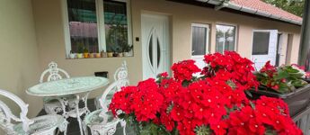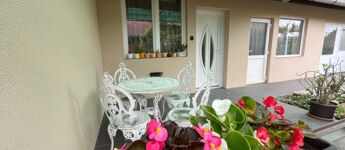 - Terasz és zöld kertkapcsolat, gyümölcsfákkal és finom szőlővel
