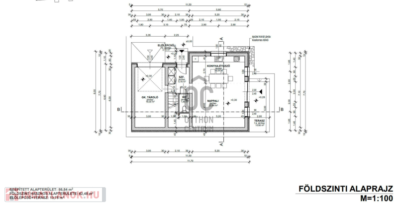 Földszint helyiségei : konyha - étkező - nappali, + terasz + garázs