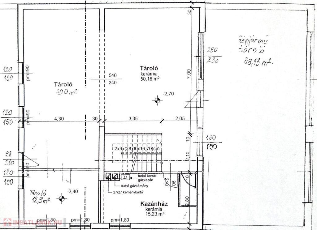 -Pince: tárolók, kazánház, valamint 3 gépjármű számára kényelmes parkolás elektromos garázskapuval