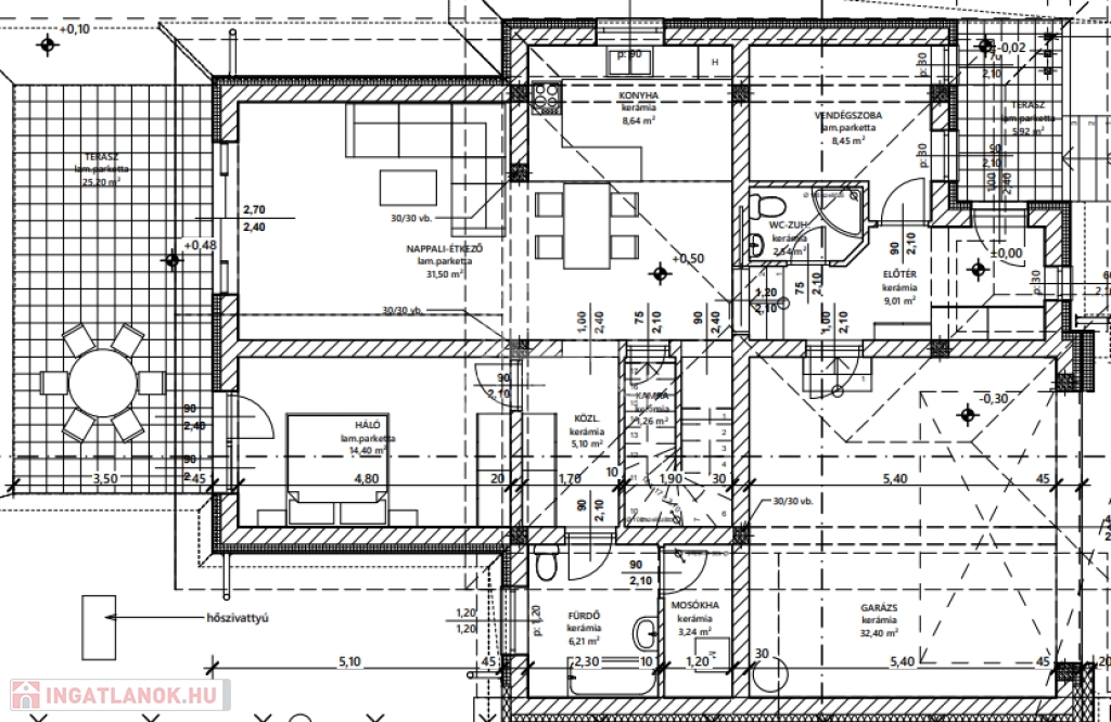 • 31.1 m2-es nappali - étkező + 25.2 m2-es fedett terasz