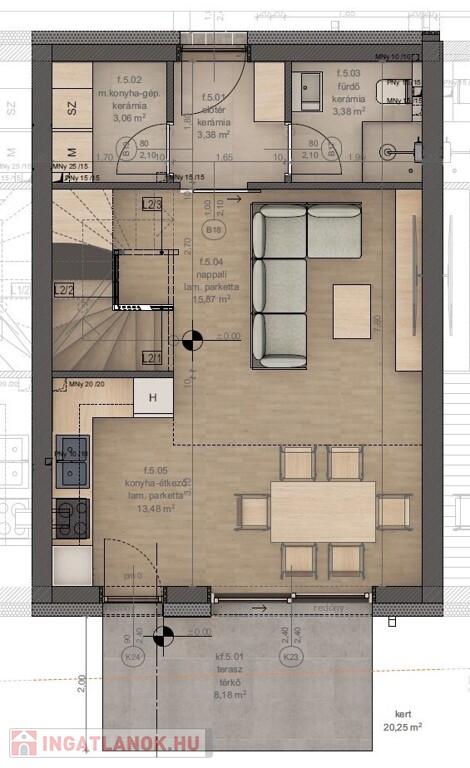 Dunaharasztin Bezerédi lakóparkban ,csendes kertvárosi részén, 9 lakásos társasházban, új építésű, kétszintes, nettó 80-90 m2-es, nappali + 2 és 3 háló szobás , gardróbos társasházi lakások, felszíni gépkocsibeállóval ,terasszal ,hozzá tartozó 20m2-120m2-es kizárólagos használatú kertrészekkel 2026 év május végi átadással, kulcsrakészen eladók. .A hirdetésben szereplő ingatlanhoz még a tetőtérben kizárólagos használatú 20 m2-es TÁROLÓ és 20 m2-es KIZÁRÓLAGOS HASZNÁLATÚ KERTRÉSZ is tartozik. Magas minőségű burkolatok, a hideg/meleg burkolat és a beltéri ajtók színe választható .