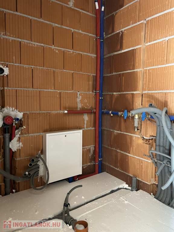Fűtése 9,5 KW-os hőszivattyúkról ,padlófűtés, használati meleg víz és lakásonként 2db beltéri klíma egységek is erről üzemelnek.
