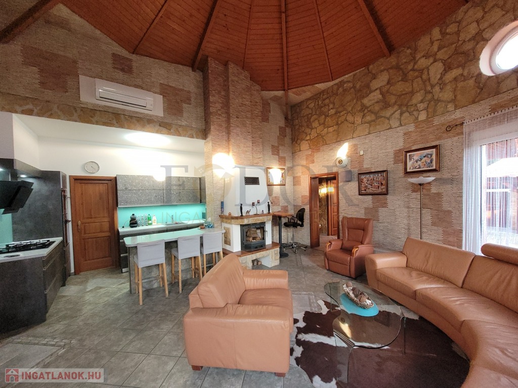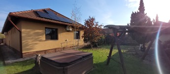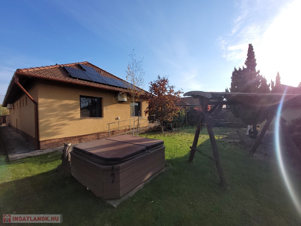Ez a ház a jövő otthona! A 7,4 kW-os napelem rendszer nemcsak környezetbarát, de rendkívül gazdaságos megoldást is kínál a jelenlegi villamos energia árak mellett, hiszen szaldós rendszerből működik. A hangulatvilágítás és az egyedi fények gondoskodnak arról, hogy esténként varázslatos atmoszféra teremtődjön.