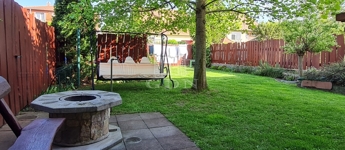 A kert rendezett, automata öntöző rendszerrel ellátott.