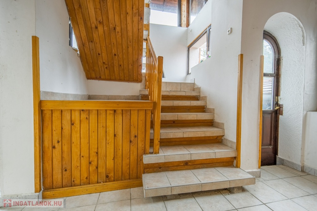 A felső két szint a belső lépcsőházból közelíthető meg, jól szeparált, tágas terekkel és remek elrendezéssel.