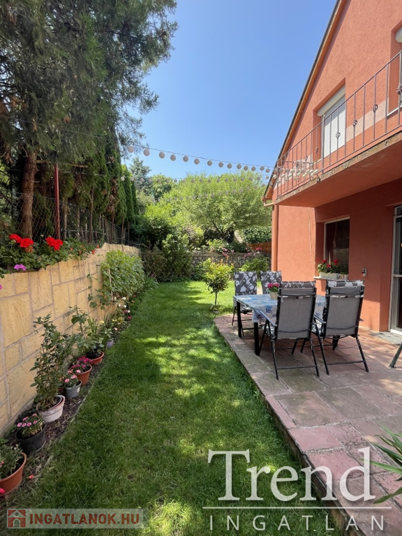 A hátsó udvar lépcsőzetes kialakítású, igényesen növényekkel parkosítva, szomszédoktól elszeparálva!