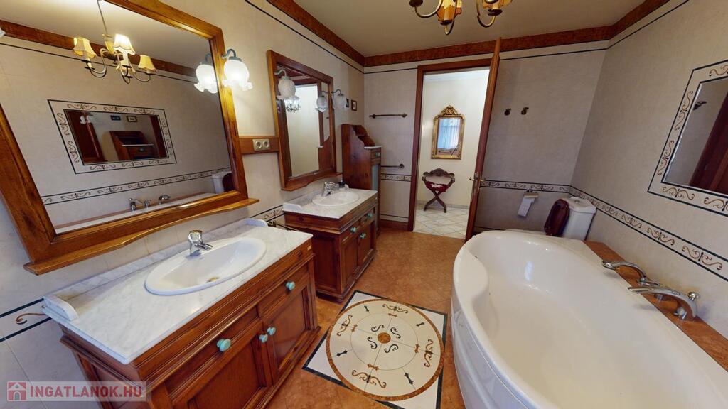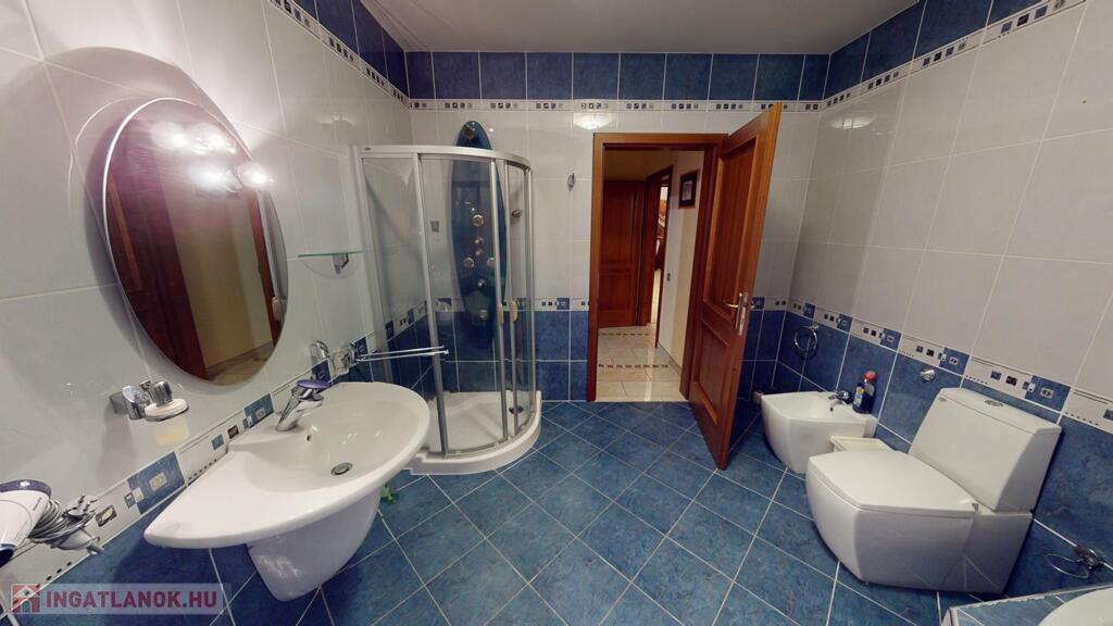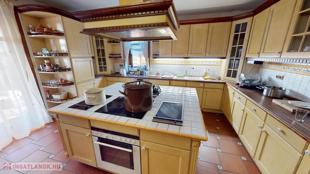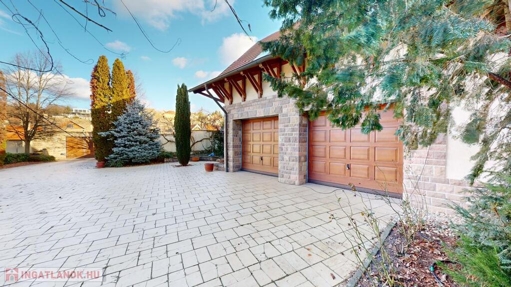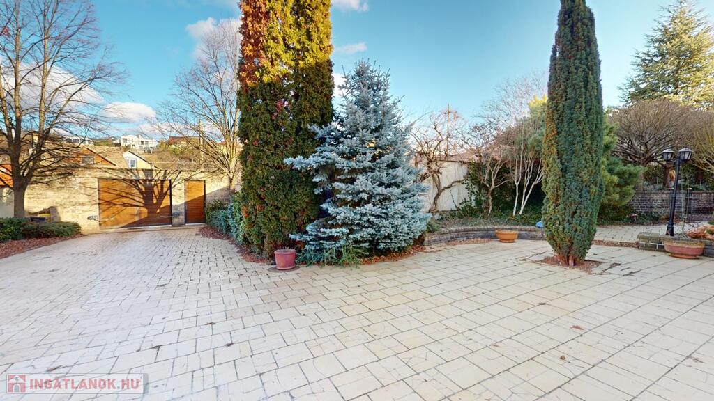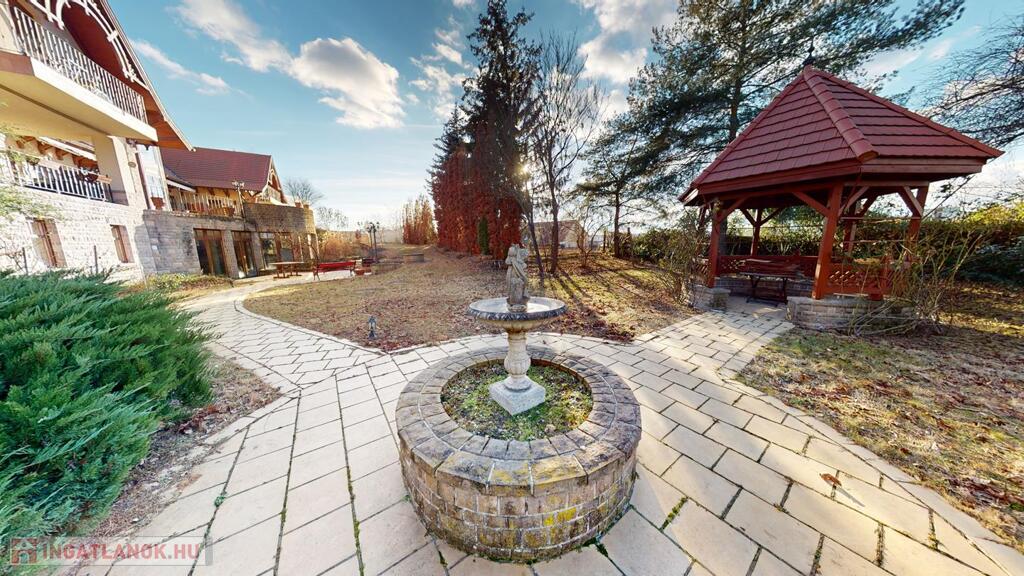 parkosított kert- filagóriával, riasztó, automata garázs illetve bejárati kapu, napkollektor a medencéhez és a használati melegvízhez, jakuzzi, klímák