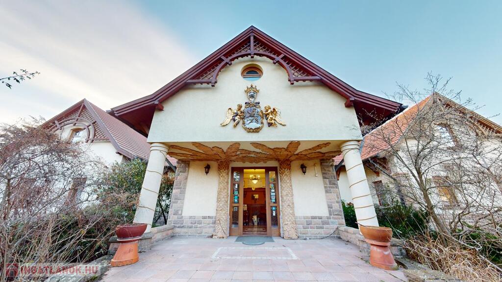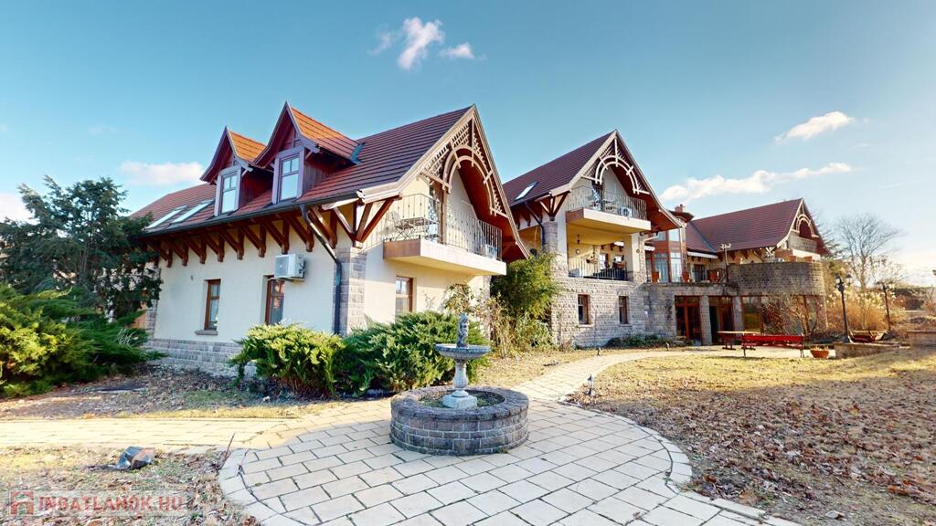 Egerben, a Türk Frigyes utca végén, 3282 nm-es telken, 2002-ben épült 616 nm nettó hasznos alapterületű, D-Ny-i tájolású, alagsor, földszint + emelet szintmegosztású, 44 és 38 cm-es porotherm téglából, monolit vasbeton födémmel épült, kétrétegű hőszigetelt nyílászárókkal felszerelt ház, 2 állásos garázzsal, komplett wellnessrésszel, medencével, összesen 235 nm teraszokkal, parkosított udvarral együtt eladó.