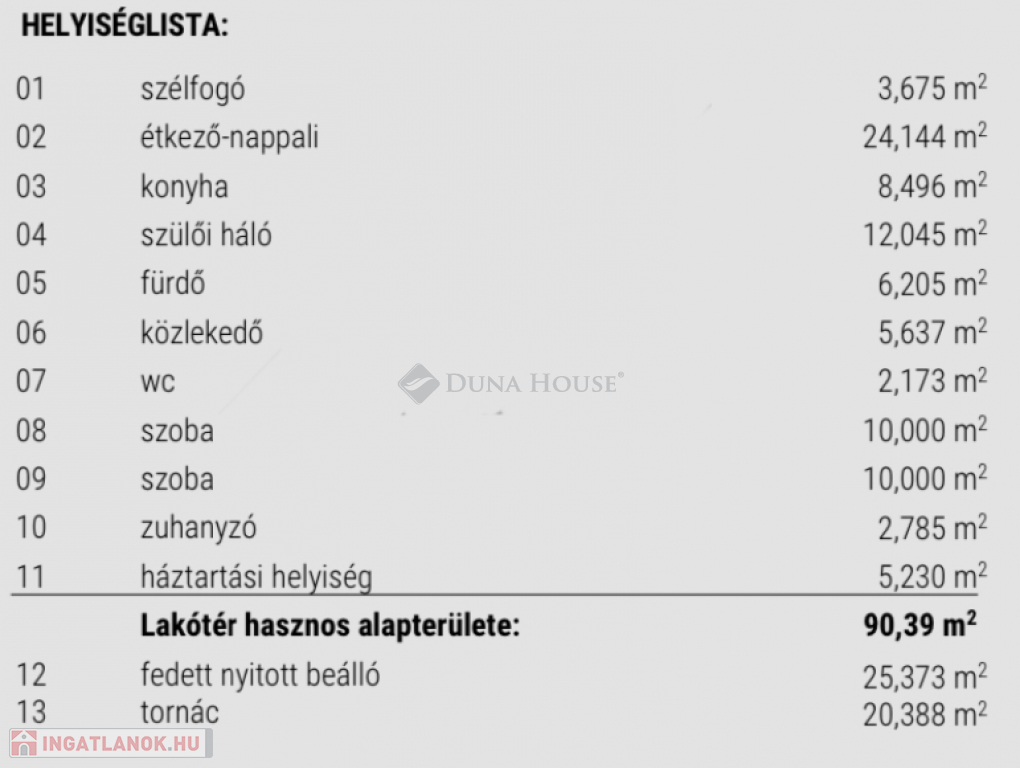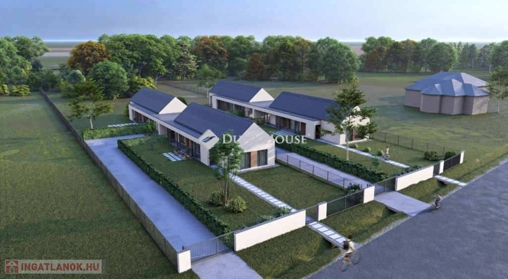 A település egyik rendezett utcájában kerülnek kialakításra az igényes megjelenésű, magas műszaki tartalommal bíró házak. Telkenként két lakóegység kerül kialakításra egymástól teljesen elválasztva, egyenként kizárólagos használatú kertekkel. A lakóépületek nettó alapterülete 90,39 nm, közéjük 1-1 autó elhelyezésre szolgáló, (25,4 m2) fedett autóbeálló kerül. A házak itt érnek össze, lakóhelyiség falai nem érintkeznek egymással, továbbá egy-egy fedett gépkocsibeálló is kialakításra kerül. A házak mindegyikénél nyitott 20,4 nm alapterületű tornác jellegű fedett terasz szolgálja a teljes kényelmet, közvetlen kapcsolattal a nappaliból.