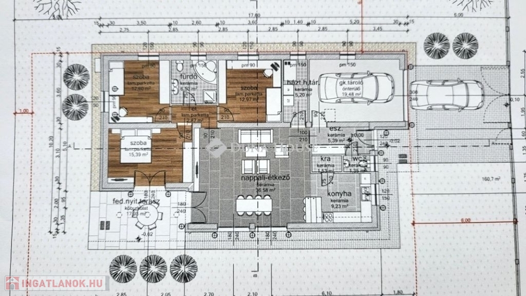Az új tulajdonosok kényelmét egy praktikus, beépített garázs is szolgálja, amely védelmet nyújt az autó számára és további tárolási lehetőséget kínál.