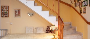 A három szintes, összesen 235 nm-es, két külön bejáratú lakásból álló ház 666 nm-es telken fekszik, főúthoz közeli csendes mellékutcában.