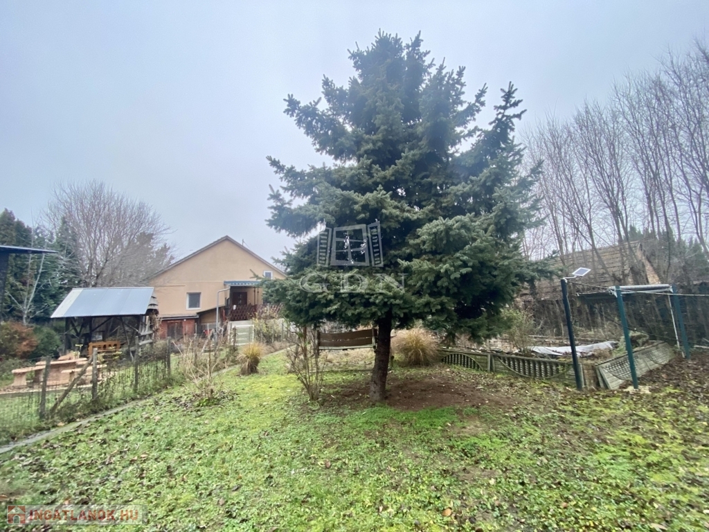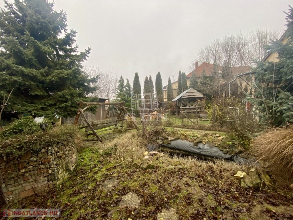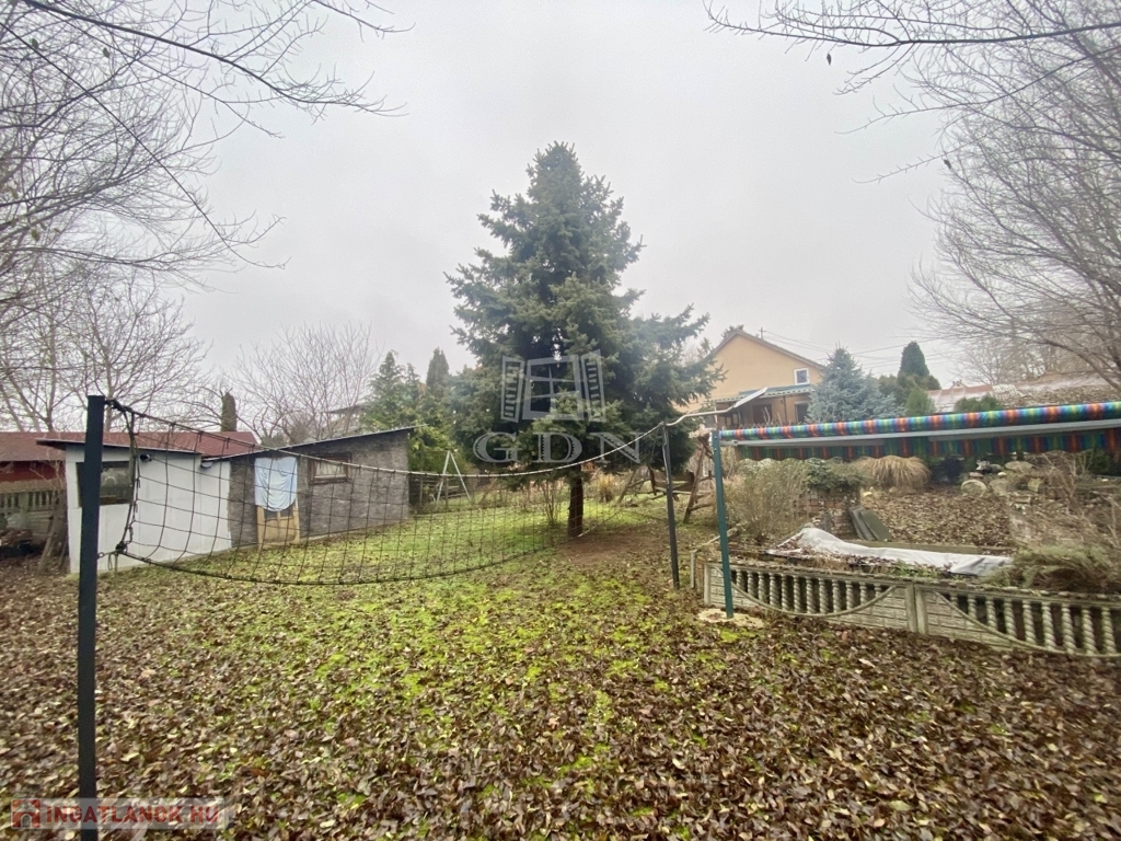 A kert igazi különlegesség: több, pihenésre alkalmas rész került kialakításra, keményfából épített fedett kiülővel, dupla gépkocsi-beállóval, kerti tóval, valamint gabion kerítéssel és kövekkel díszített magas ágyásokkal, örökzöld növényekkel. A kellemes hangulatról 2 db hintaágy is gondoskodik. A magas növényzettel körbevett telek teljes intimitást biztosít, elzárva a külvilágtól.