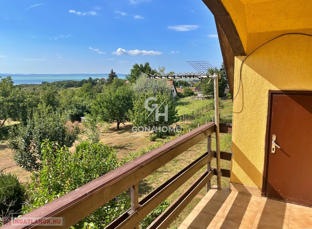 - Az emeleten található egy szoba és egy félszoba, egy fürdőszoba/WC, valamint egy BALATONI PANORÁMÁS terasz, ahonnan két oldalról nyílik egy tetősík alatti kisebb tároló