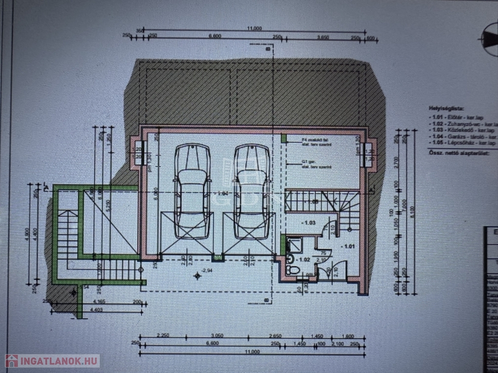 Helyiség-lista: (helyiségek hasznos alapterülete)