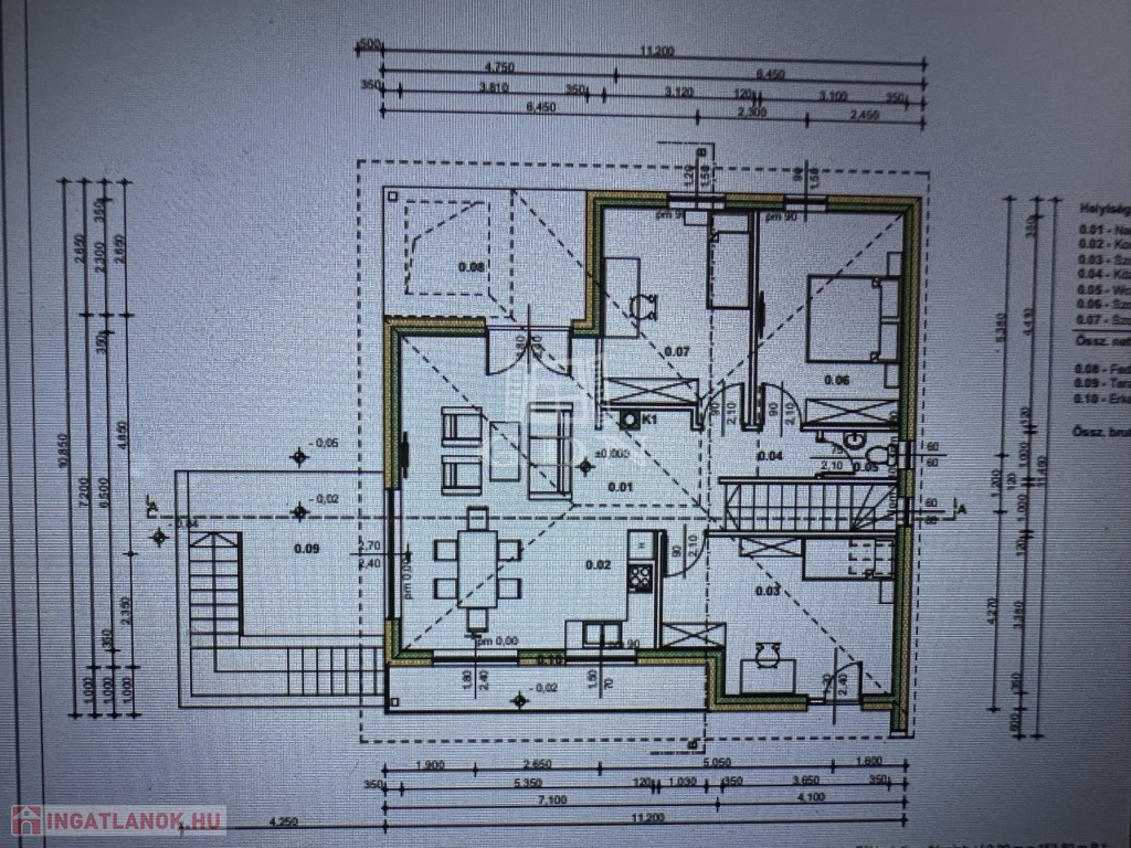 fóliázással, a belső oldalán fehér színnel készülnek. A külső nyílászárók Kömmerling88 MD típusú 7 légkamrás műanyag szerkezetű ablakok és ajtók 3 rétegű hőszigetelt üvegezéssel. A belső nyílászárók préselt farostlemez ajtólapokból készülnek.