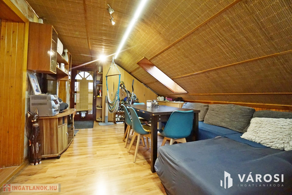 -Két lakás, fsz 92 m2, tetőtéri 48 m2, külső feljáróról közelíthető meg, de igény szerint a belső feljáró visszanyitható.