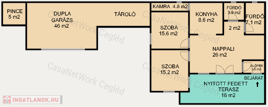 Ingatlan helyiségei: