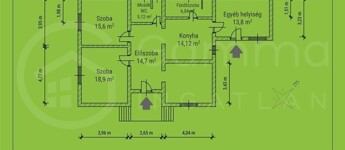 -Pince: A ház alapterületének felét kitevő pinceszint, itt található a kazán is.