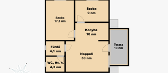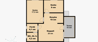 A 70-es években épült házban nappali + 2 szoba, konyha, spájz, fürdőszoba és egy fedett terasz található. Az udvarban található még egy 32 négyzetméteres garázs és tároló is.